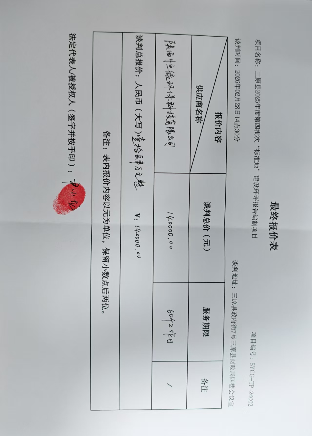 三原县自然资源局三原县2025年度第四批次“标准地”建设环评报告编制项目中标(成交)结果公告